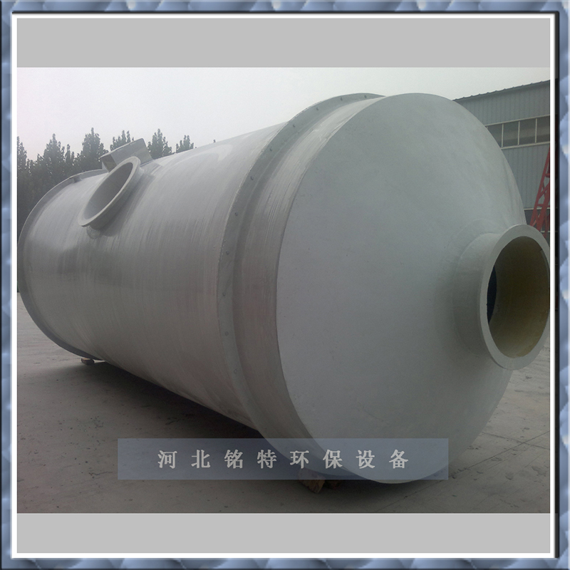 采用氫(qīng)氧化鈉溶液作為吸收(shōu)中和液。酸霧廢氣由風機壓入淨化塔(tǎ)的中段內筒形(xíng)成壓力(lì)室,再由壓加重室均配給各根鼓泡管(guǎn),廢氣通過鼓泡管進入貯液箱的(de)吸(xī)收中和液中產(chǎn)生鼓泡(pào),氣(qì)泡通過濾料環層,使氣液再次得到充分(fèn)接(jiē)觸後,經脫液風脫液,然後(hòu)排入大氣。根據以上設計原理,改進(jìn)了一般玻璃鋼淨化塔的結構,采取(qǔ)了以下措施: